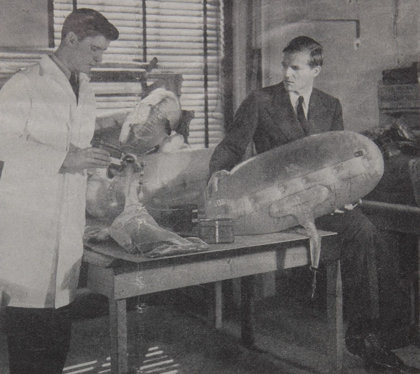 Here he is looking even more handsome with George Gallowhur with his desalination device he designed for Navy and Army Airmen.