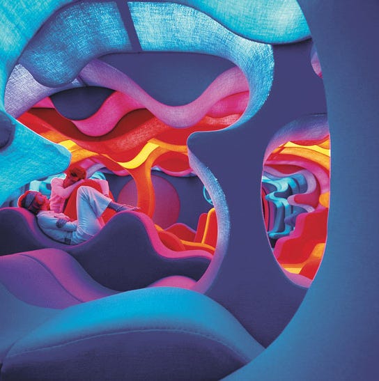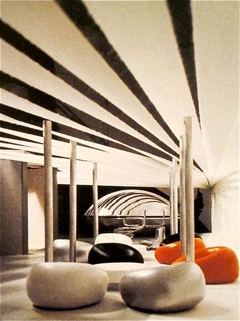This is why the ghost of Verner Panton might have been “pissed off”. This is his “Visiona 2” from 1970. Secondly, kinda not into my joke any longer. Those poor people, one minute they are checking out this trippy sculpture by a 77 year old respected British artist and the next thing they are gone. So sad…