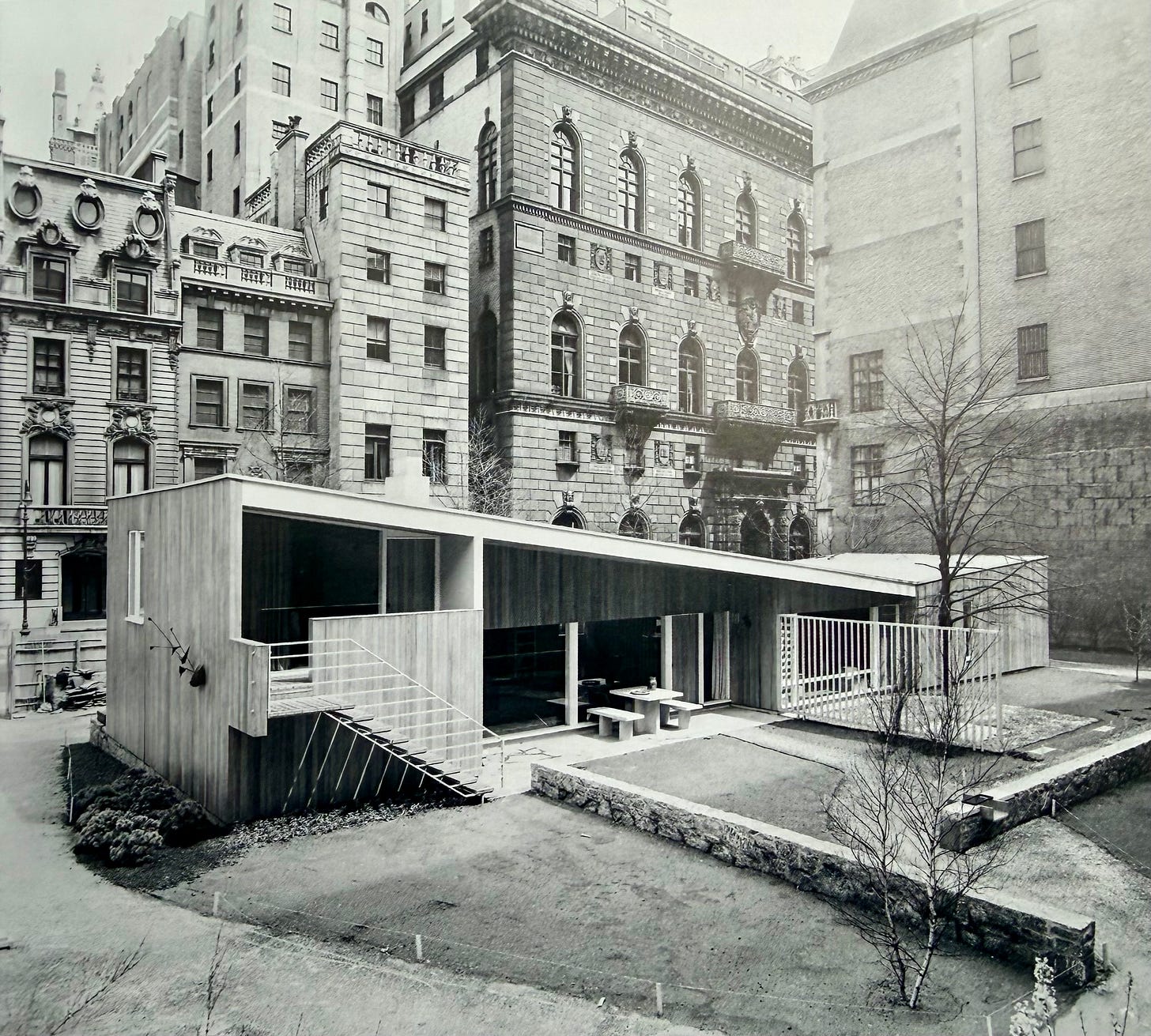 The house that you could say started it all, the Breuer “House in the Museum Garden” from 1948 at MoMA. The Stillmans, who became Breuer’s biggest clients, first saw Breuer’s work here and quickly commissioned him to build them a house, the first of 4 residences that the architect would design for them, not to mention the referrals and corporate business Rufus and his wife Leslie passed on to Breuer and his firm.