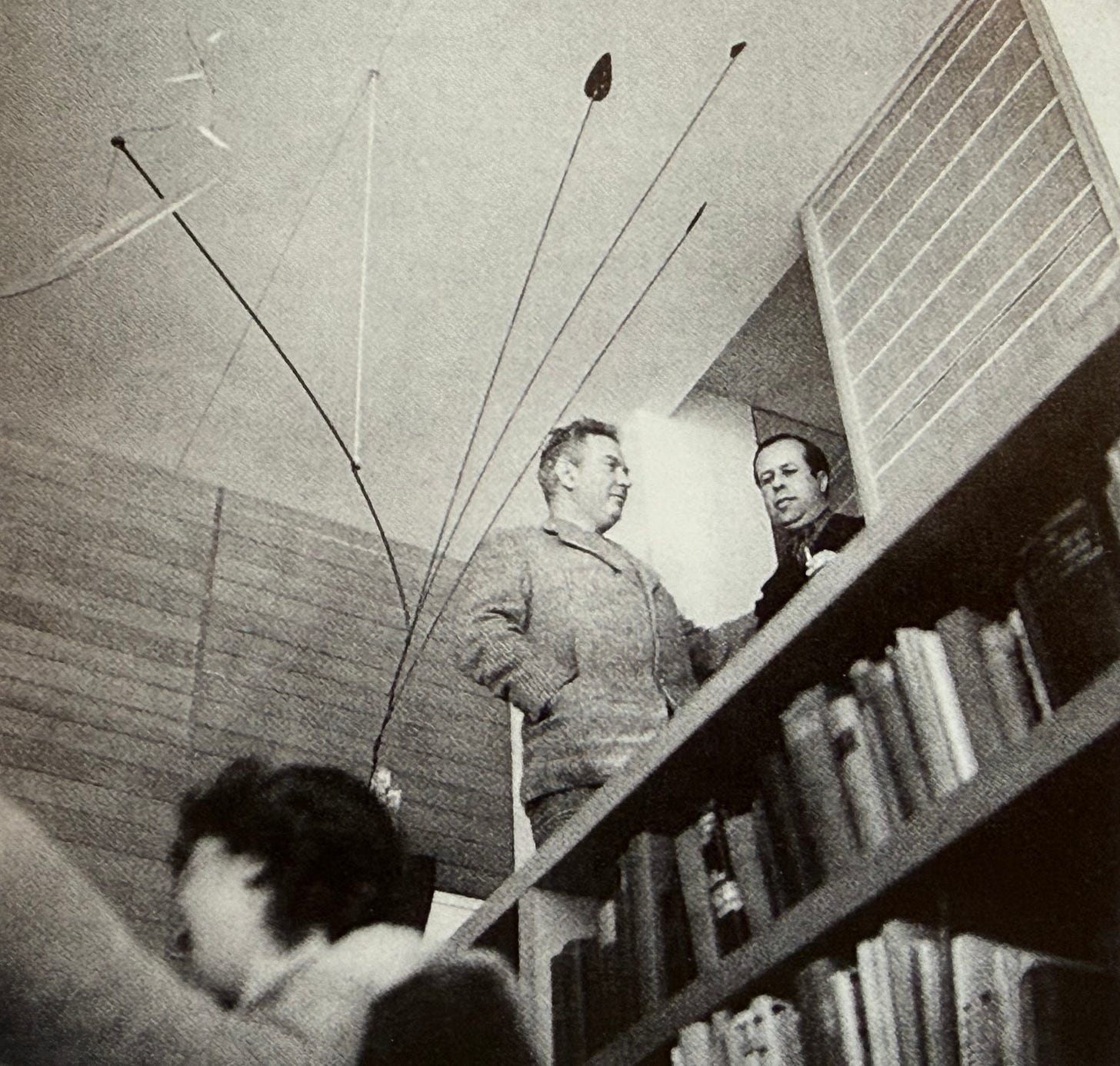 Calder with his mobile and Josep Lluís Sert during a party at the house in 1941. Calder would become very close with the Breuers and Stillmans, designing murals and sculpture for all of their buildings and generally being the life of the party.